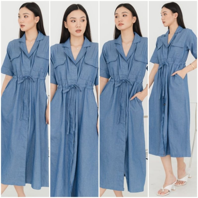 Video perkenalan produk ❣️ SPECIAL PRICE ♡ PREMIUM ♡ ORIGINAL ! JEANNE DENIM JEANS VINTAGE COLLAR BUTTON POCKET TIED MIDI DRESS LONG OUTER ( BUSUI FRIENDLY ). Sumber: Shopee.