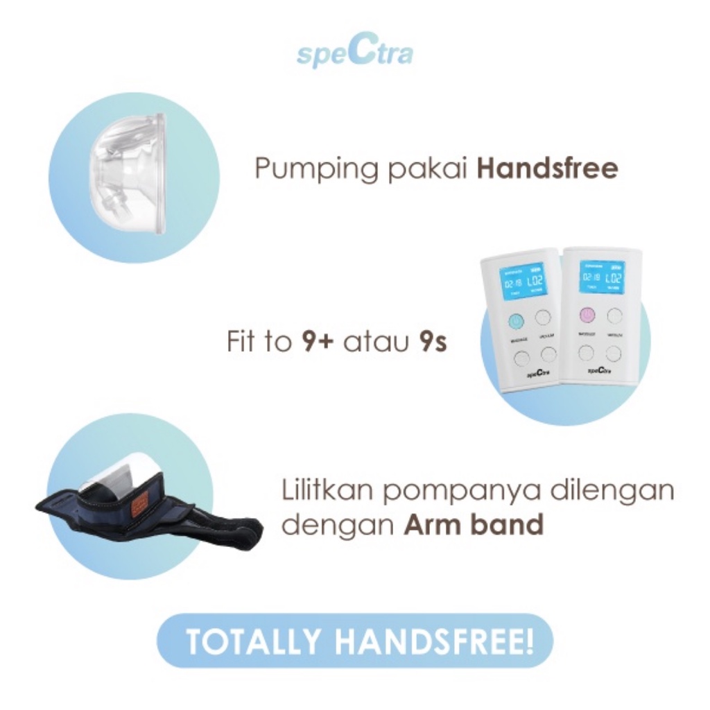 Spectra Handsfree merupakan corong alternatif 2 in 1 dari Spectra untuk digunakan dengan cara disematkan kedalam bra, sehingga penggunaannya tidak perlu disanggah dengan tangan.