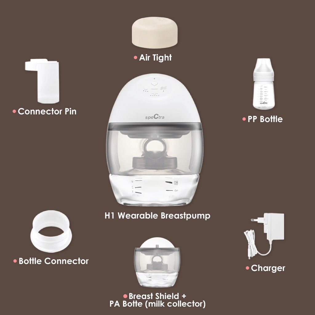 Memiliki 5 level mode pijat untuk menstimulasi LDR, memiliki 3 mode hisap dengan 5 level kekuatan hisap yang dapat disesuaikan dengan kenyamanan penggunanya. Semua bagian pada Spectra H1 Wearable Breastpump dapat dilepas sehingga mudah dibersihkan dan disterilisasi, terbuat dari plastik BPA Free dan memiliki sertifikasi KEMENKES RI.