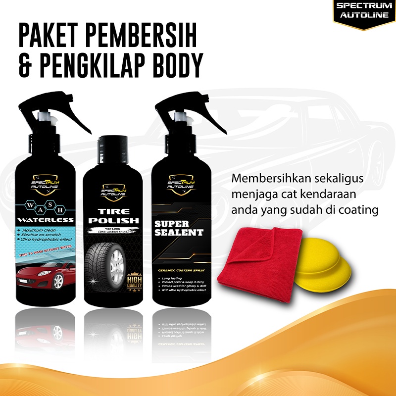 SPECTRUM Paket Pembersih Body Mobil Motor Wash Waterless Semir Ban Spray Sealent Semi Coating Ceramic Efek Daun Talas