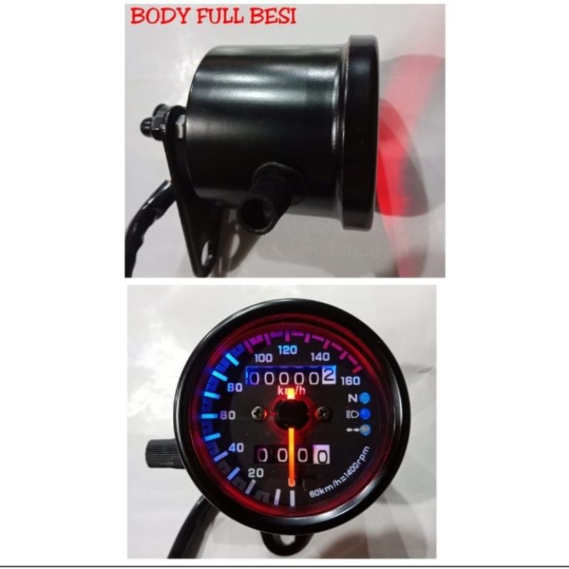 Otomotif > Aksesoris Sepeda Motor > Speedometer, Odometer, & Gauge Motor > speedometer variasi motif bulat model jarum ada indikator lampu sen netral dan lampu jauh universal