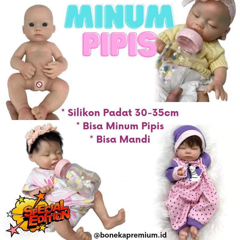 Spesial Edisi Boneka Bayi Reborn Baby Alive Full Silikon Padat Minum Pipis Mandi 36cm Boy Girl