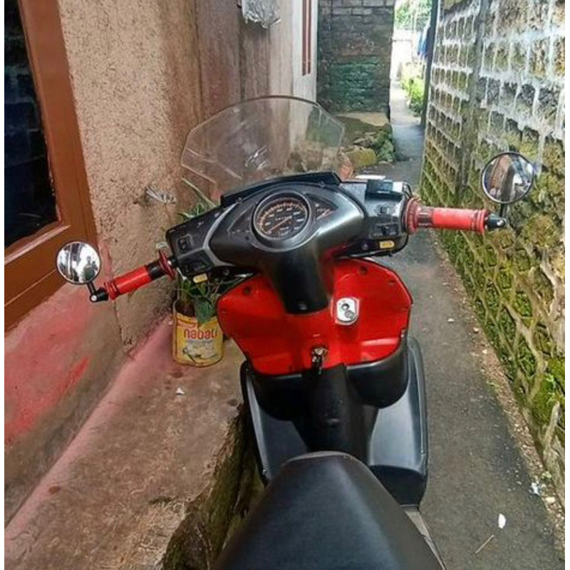 spion jalu stang model fleksibel. bahan full cnc kaca bening dan datar. buat semua motor.