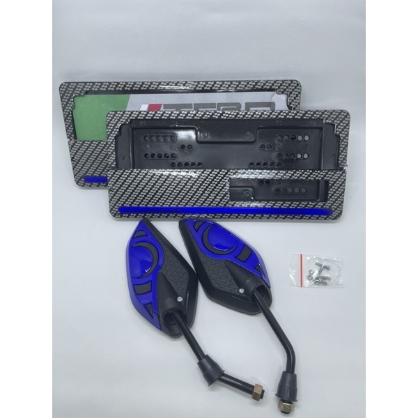 Otomotif > Aksesoris Sepeda Motor > Aksesoris Sepeda Motor Lainnya > Spion JJ Honda Yamaha + Cover Plat Nomor Karbon List Biru