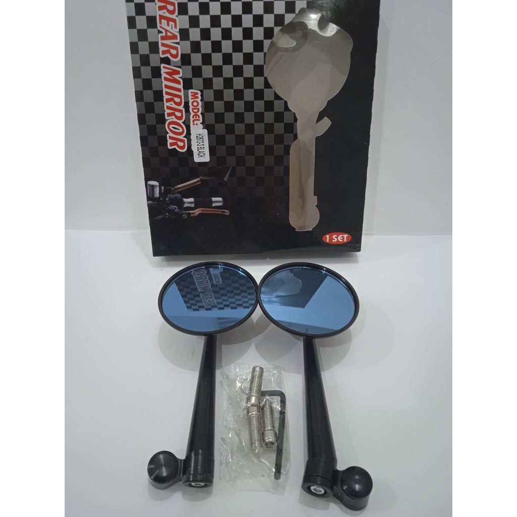 Spesifikasi : - Merk: Campur / Random (SESUAI STOK READY) - Kaca Soft Blue (Kaca Biru) Anti Silau & Tidak Mengganggu Pandangan Saat Malam Hari. - Bahan Full Cnc Premium Kuat,Kokoh & Tidak Mudah Patah. - Desain Dan Model Sangat Mewah Dan Elegan - Universal Bisa Semua Motor - Cocok Untuk Motor Model Japstyle - Dilengkapi Baut Model L