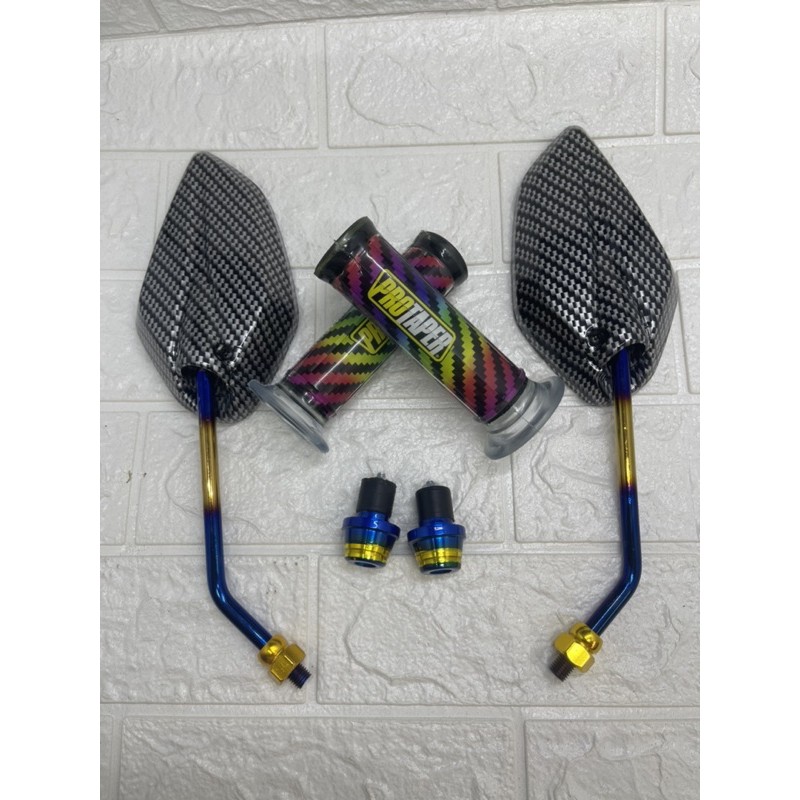 Otomotif > Aksesoris Sepeda Motor > Spion Motor & Aksesoris > Spion Jupiter Karbon Tangkai Panjang+Handgrip Pelangi+Jalu stang Matic Twotone Universal Yamaha