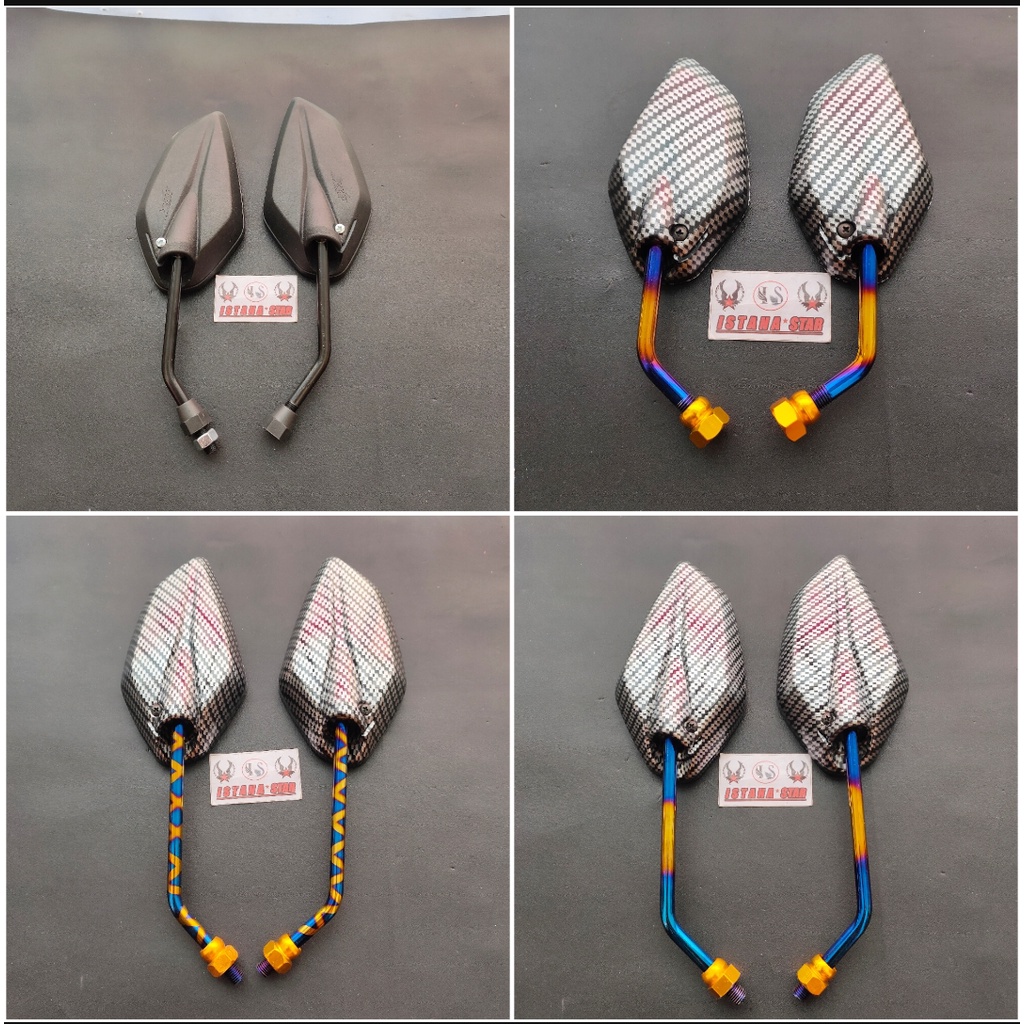 Otomotif > Aksesoris Sepeda Motor > Spion Motor & Aksesoris > Spion Jupiter Z Gagang Twotone Karbon - Spion Karbon 2tone Buat Motor Yamaha Jupiter MX Mio Vega Vixion Nmax plus dapat Drat / Baut Sambungan Honda Jadi bisa buat Motor Honda Beat Vario Scoopy Blade Supra lainnya