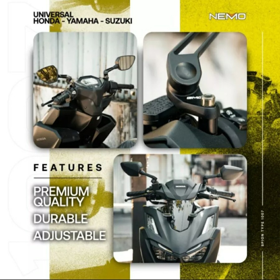 Fitur : - Terdiri dari 1 pasang (2 pcs) spion. - Sudah termasuk baut dan dudukan baut.
