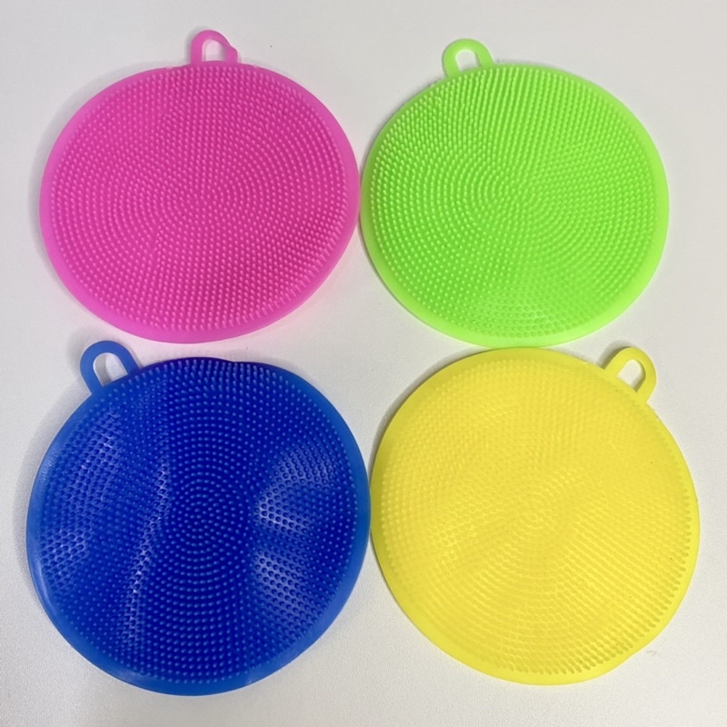 Bahan : Silikon bergerigi Ukuran : Diameter 11.5 cm Warna : Multicolor Terdapat gantungan untuk menggantung spons silikon pencuci piring ini