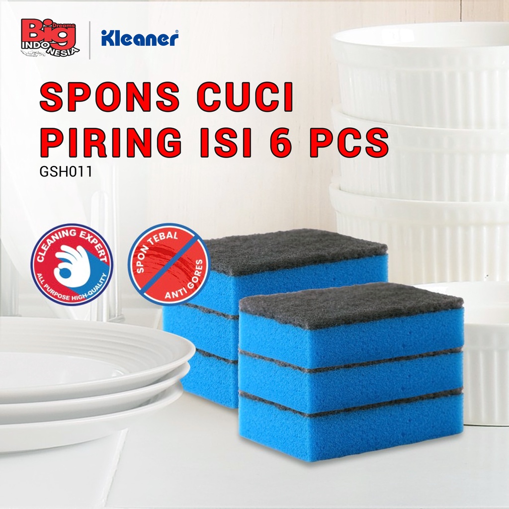 Perlengkapan Rumah > Alat Pemeliharaan Rumah > Spons & Scouring Pad > Spons Sabut Cuci Piring 6 Pcs Anti Gores Sponge Serbaguna Kleaner GSH011