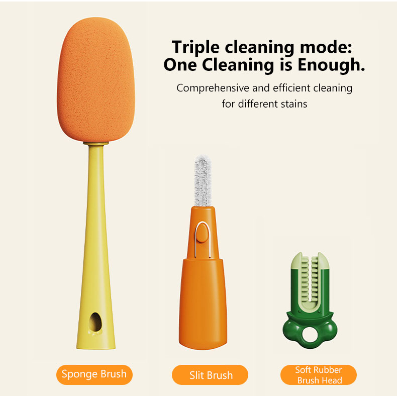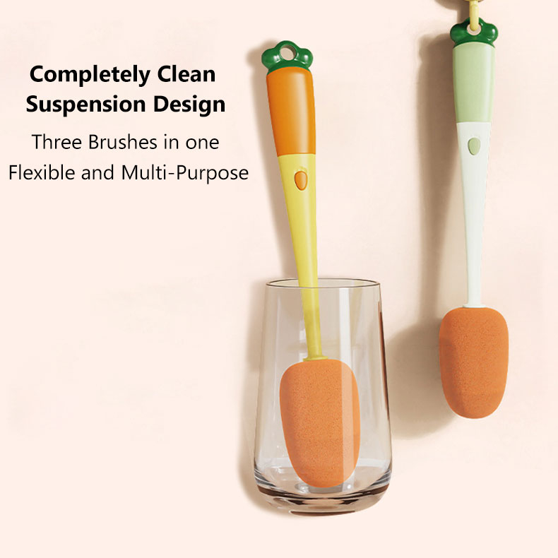 Kelebihan: - Sikat utama terbuat dari material foam rubber yang bisa dilepas pasang - Terdapat 3 sikat dalam 1 produk - Ukuran tongkat panjang dapat menjangkau lebih dalam - Cocok untuk semua jenis gelas/botol/cakir/mug/dll - Bisa membersihkan hingga memutar 360 derajat - Pegangan nyaman anti licin - Tidak merusak permukaan botol/gelas, aman digunakan