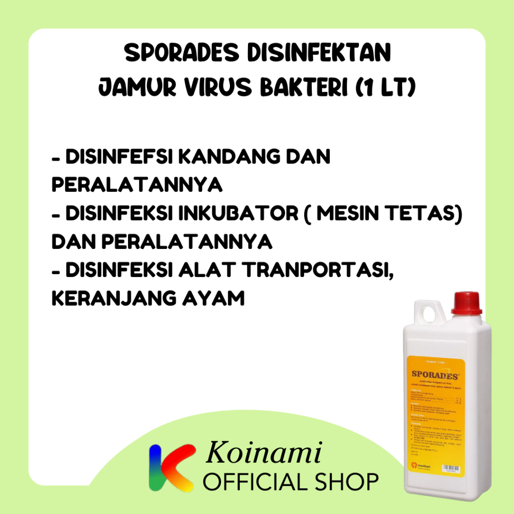 PERHATIAN - KANDANG BILA HENDAK DI SEMPROT HARUS DALAM KEADAAN KOSONG - TEMPAT RANSUM DAN MINUM YG TELAH DIDESINFEKSI, HARUS DI CUCI DAN DI BILAS DENGAN AIR BERSIH, BILA MATA ATAU KULIT TERKENA SPORADES. - SIMPAN OBAT DI TEMPAT YG KERING DAN TERTUTUP RAPAT, TERHINDAR DARI SINAR MATAHARI LANGSUNG