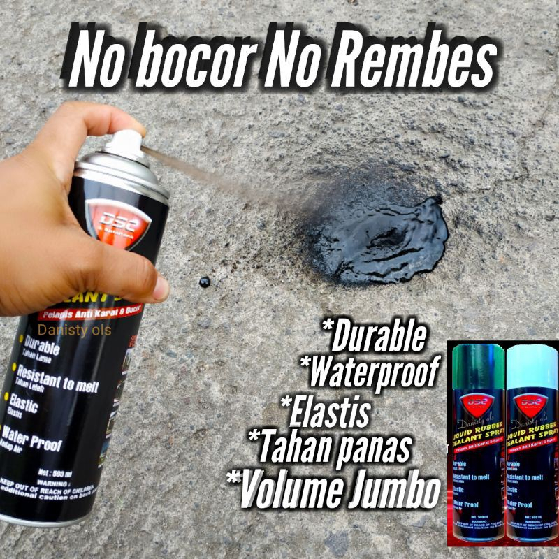 # Cara pengunaan Tutorial pemakaian DSC liquid rubber sealant spray : 1. Bersihkan semua media yang akan dilapisi atau akan di Semprotkan harus bersih dan kering. 2. Kocok kaleng selama 60 detik agar semua isi dalam kaleng tercampur rata. 3. Kocok atau goyangkan liquid rubber sealant spray kurang lebih +- 30 detik s/ d 1 menit 4. Pastikan terdengar suara pemberat yang terdapat dalam kaleng hingga terasa cairan sudah merata , hal tersebut menandakan cairan liqidud rubber sealant spray sudah merata / tidak ada endapan dan siap digunakan 5. Semprotkan liquid rubber sealant spray pada objek yang mengalami keretakan maupun kebocoran hingga merata ketebalan di sesuai kan dengan tingkat keretakan maupun kebocoran 6. Gunakan sarung tangan untuk menjaga kebersihan tangan anda 7. Jarak semprot 30 cm, Semprotkan media Hingga rata dan tunggu hingga mengering 3 - 5 Menit, Lalu semprotkan kembali untuk lapis kedua kalinya, ulangi bila perlu