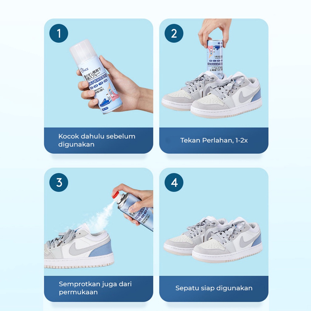 Kenapa Harus menggunakan Spray ini di banding pengharum sepatu lainnya? - Teknologi baru Ag+, lebih cepat dan lebih ampuh basmi bakteri penyebab bau - Tahan lebih lama dengan aroma segar dan nyaman - Ramah lingkungan - Lebih cepat menyebar keseluruh area sepatu dan lebih merata di banding menggunakan cairan parfum konvensional - Teknologi nano mist sehingga Tidak membekas dan membuat sepatu lembab - Non Stain Formula. Tidak menimbulkan noda - Menggunakan kepala pompa yang di rancang khusus untuk sepatu sehingga bisa di tancapkan secara terbalik kedalam sepatu