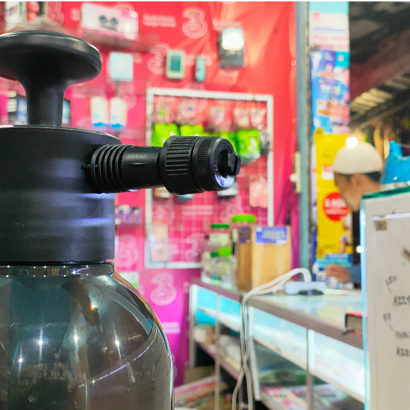 tutup rapat tabung dan kepala sprayer