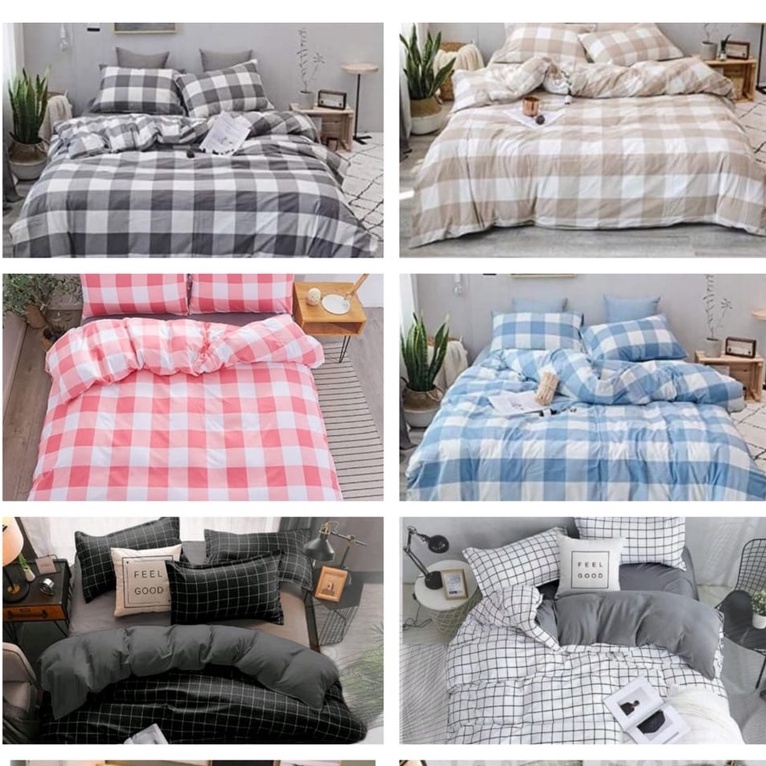 Set seprei motif kotak hitam/abu/biru/putih aesthetic bahan katun microtex yang adem halus dan di jamin tidak luntur,mudah dalam perawatanya.