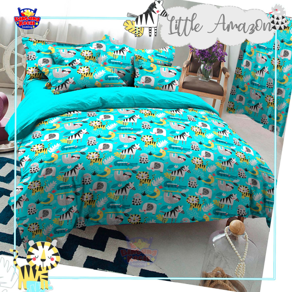 Detail SPREI ANTI GESER MOTIF ANAK ANIMAL BLUE & GREY