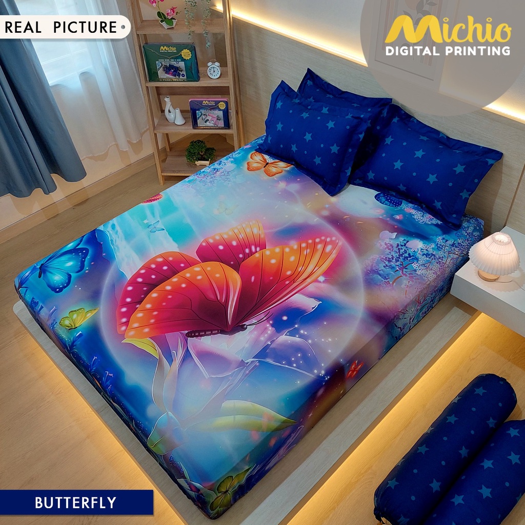 Perlengkapan Rumah > Kamar Tidur > Sprei, Sarung Bantal, & Sarung Guling > SPREI BUTTERFLY KUPU MICHIO 180X200X30, 160X200X30, 120X200X30