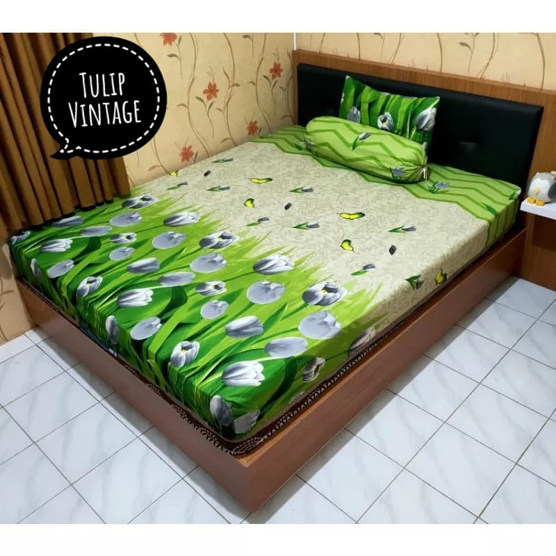 Sprei : Uk. 120x200 (1 Sarung Bantal & 1 Sarung Guling) Tinggi 20 Cm Ada karet di 4 sudut nya, memudahkan dalam pemasangan Tali sarung guling sudah terpasang. No ribet pasang tali sendiri