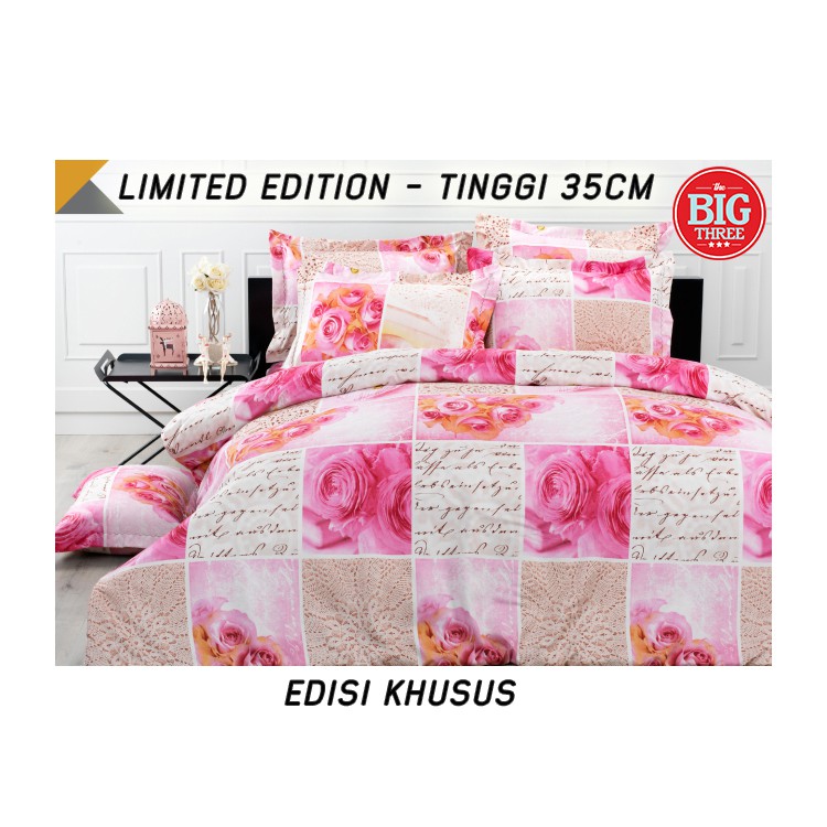 Detail Sprei KENDRA Signature Tinggi 35 cm 120x200 LOVE FOREVER - Single Size 120 T35 SP - Bunga pink