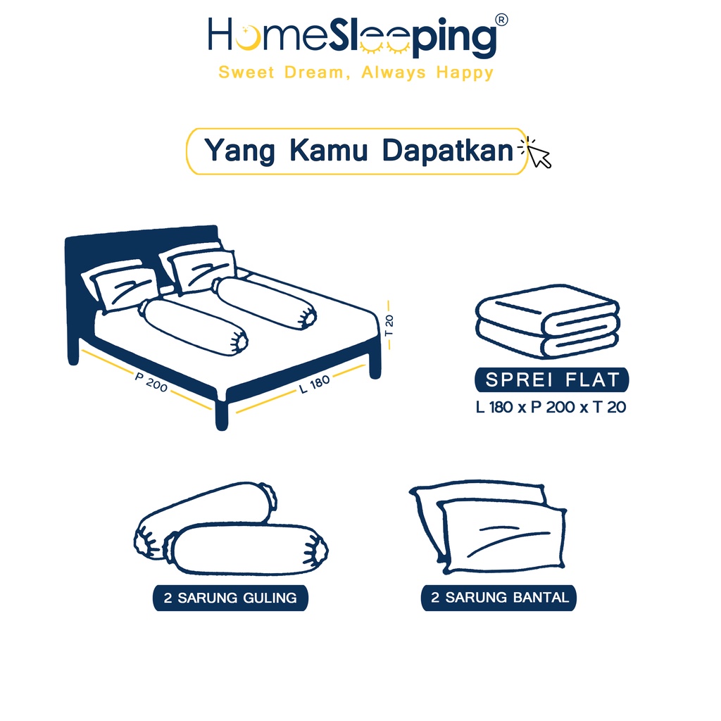 � 1 Sprei Flat 180 x 200 Tinggi 20 cm � 2 Pcs Sarung Bantal � 2 Pcs Sarung Guling
