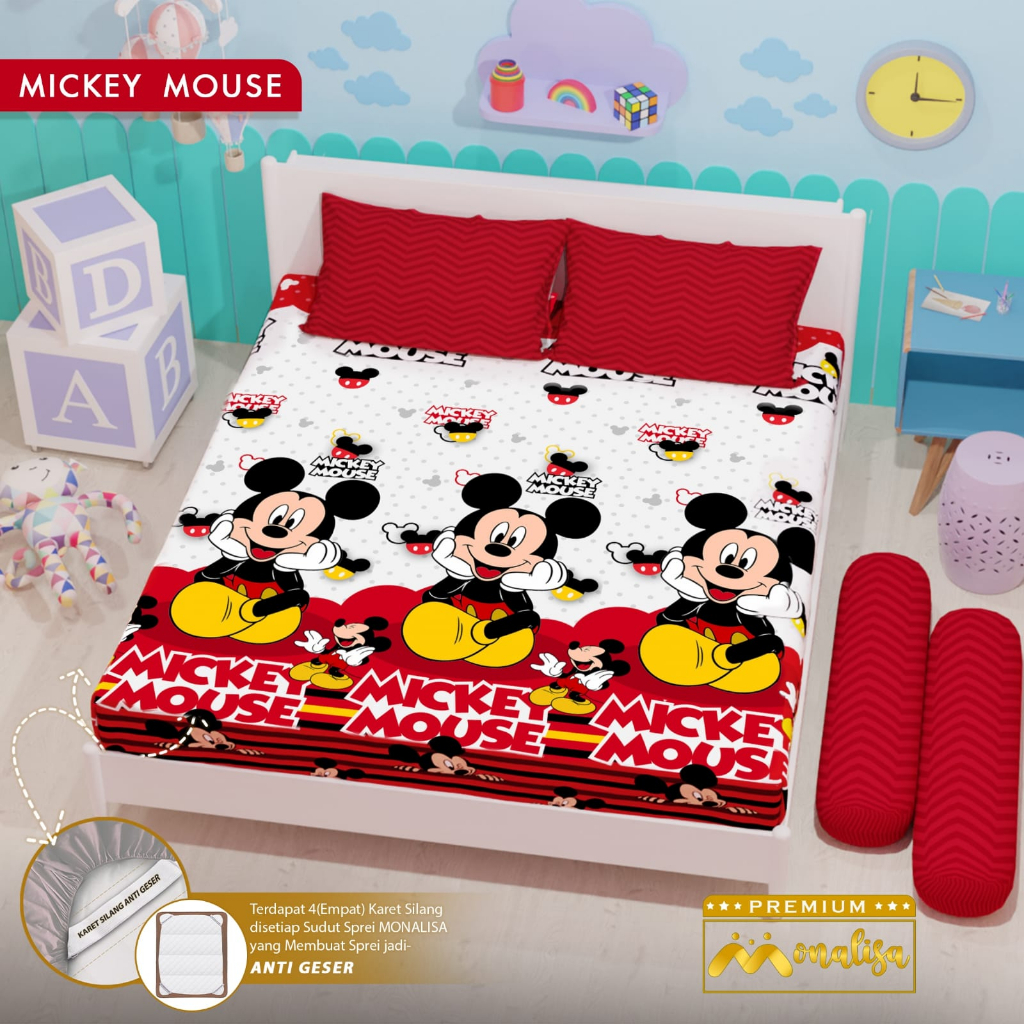 Detail SPREI Mickey Mouse Monalisa Premium dengan karet anti geser 180x200 dan 160x200