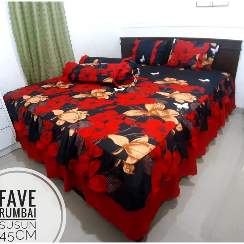 sprei rumbai 2 layer uk 160,180 saja tinggi sprei 20cm tinggi rumbai 45cm 4 karet disudut sprei spefikasi 2 sarban renda 2 sargul renda menggunakan perpaduan layer yg cantik kami adl produsen pertama kali menghebohkan sprei Rumbai yg terkenal kerapatan dan kerapian jahitanya di Klaten sehingga banyak yg kulak di mari dan skrg banyak yg meniru boleh di adu hasil produksi kami
