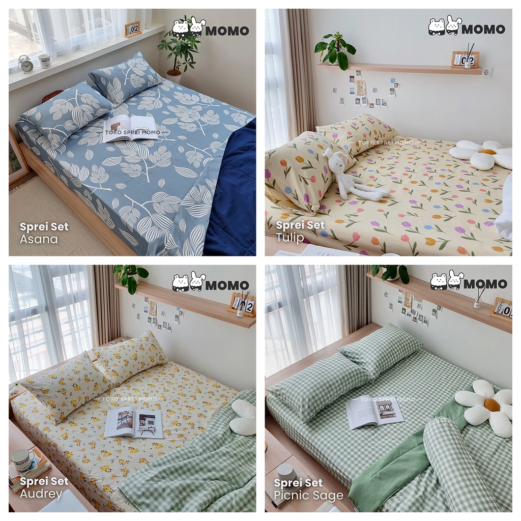 Detail Sprei Set Motif bunga MOMO - Ukuran 160, 180 dan 200 x 200