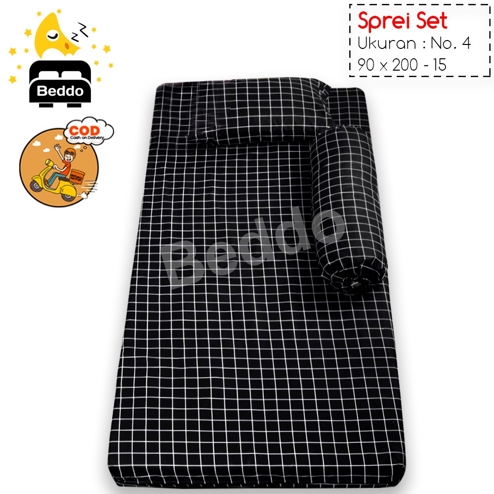 Sprei Set Motif Kotak Hitam No.4 (90x200x15) | Seprai Kasur Busa Aesthetic | Promo Termurah