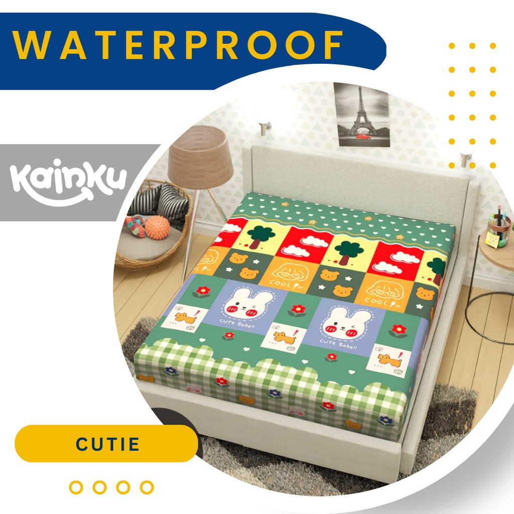 Karakter kain waterproof kainku, Bagian atas dibuat dari bahan yg halus dan lembut, dan bagian bawah dilapisi LATEX anti bocor yang kuat dan terbukti digunakan bertahun-tahun tidak bocor. LEBIH HIGENIS,AMAN, dan Tidak apek. ( BUKAN WATERPROOF model Pampers yg hanya 1-5x pemakaian bocor karena pencucian).