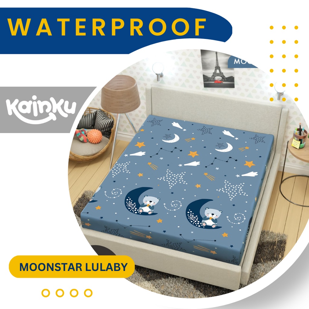 Karakter kain waterproof kainku, Bagian atas dibuat dari bahan yg halus dan lembut, dan bagian bawah dilapisi LATEX anti bocor yang kuat dan terbukti digunakan bertahun-tahun tidak bocor. LEBIH HIGENIS,AMAN, dan Tidak apek. ( BUKAN WATERPROOF model Pampers yg hanya 1-5x pemakaian bocor karena pencucian).