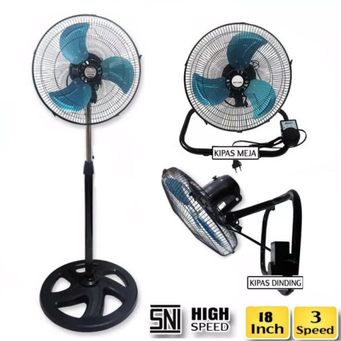 Detail SQRS Kipas Angin 3in1 18inch Swing Mode Baling Besi Stand Fan Berdiri Dinding Duduk Meja 3 Kecepatan