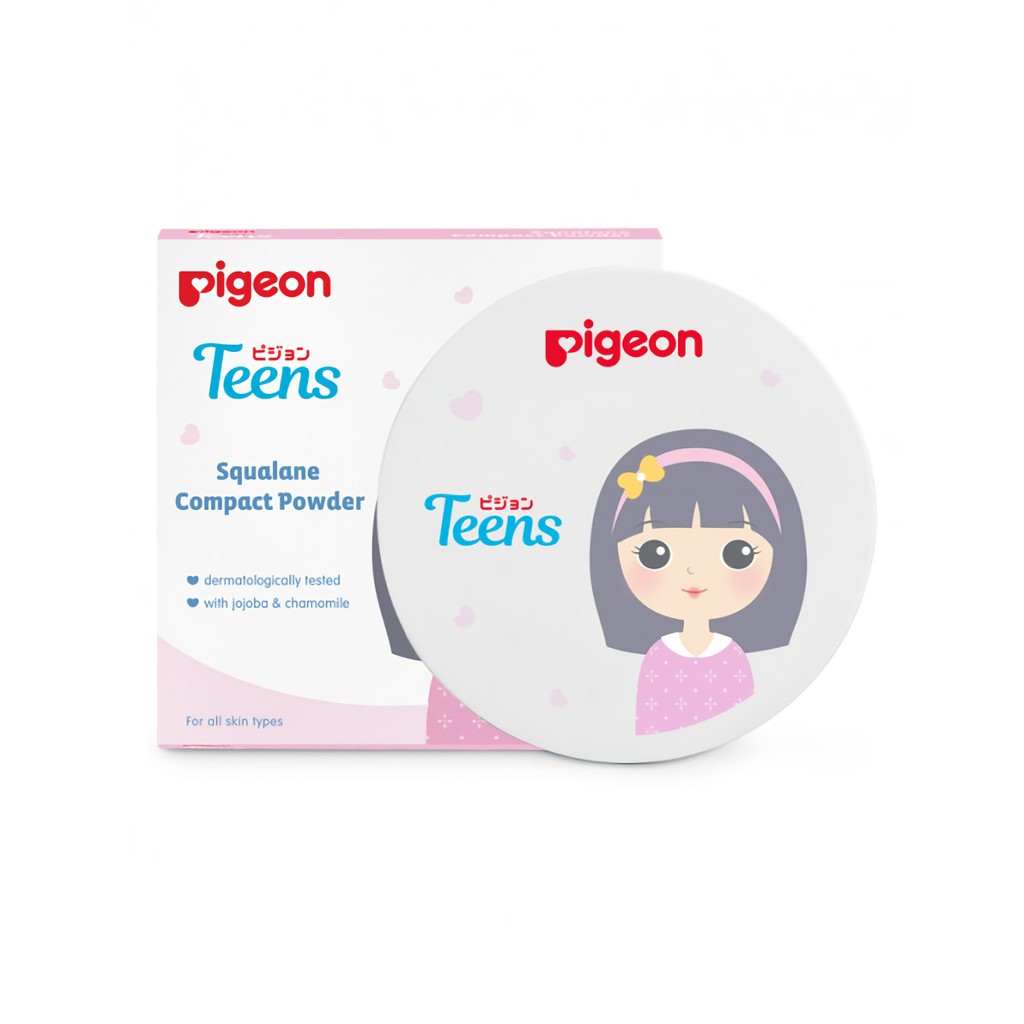 PIGEON Compact Powder Squalane 14Gr - White - NEW/(Kemasan Baru) Bedak padat untuk remaja yang lebih banyak beraktivitas di dalam ruangan. Mengandung Squalane & Ekstrak Jojoba untuk menjaga kelembaban kulit wajah, serta Ekstrak Chamomile untuk melindungi kilit dari iritasi ringan. Produk ini juga sudah di uji secara dermatologi bahwa produk tidak menimbulkan iritasi pada kulit (Dermatologically Tested). 78x15x78 mm Produk Pigeon Teens skincare diformulasikan khusus untuk remaja berusia 10 - 20 th, namun karena formulanya yang ringan maka produk ini dapat digunakan untuk semua jenis kulit maupun semua usia. Tersedia dalam 4 pilihan warna: White, Beige, Yellow, Gold