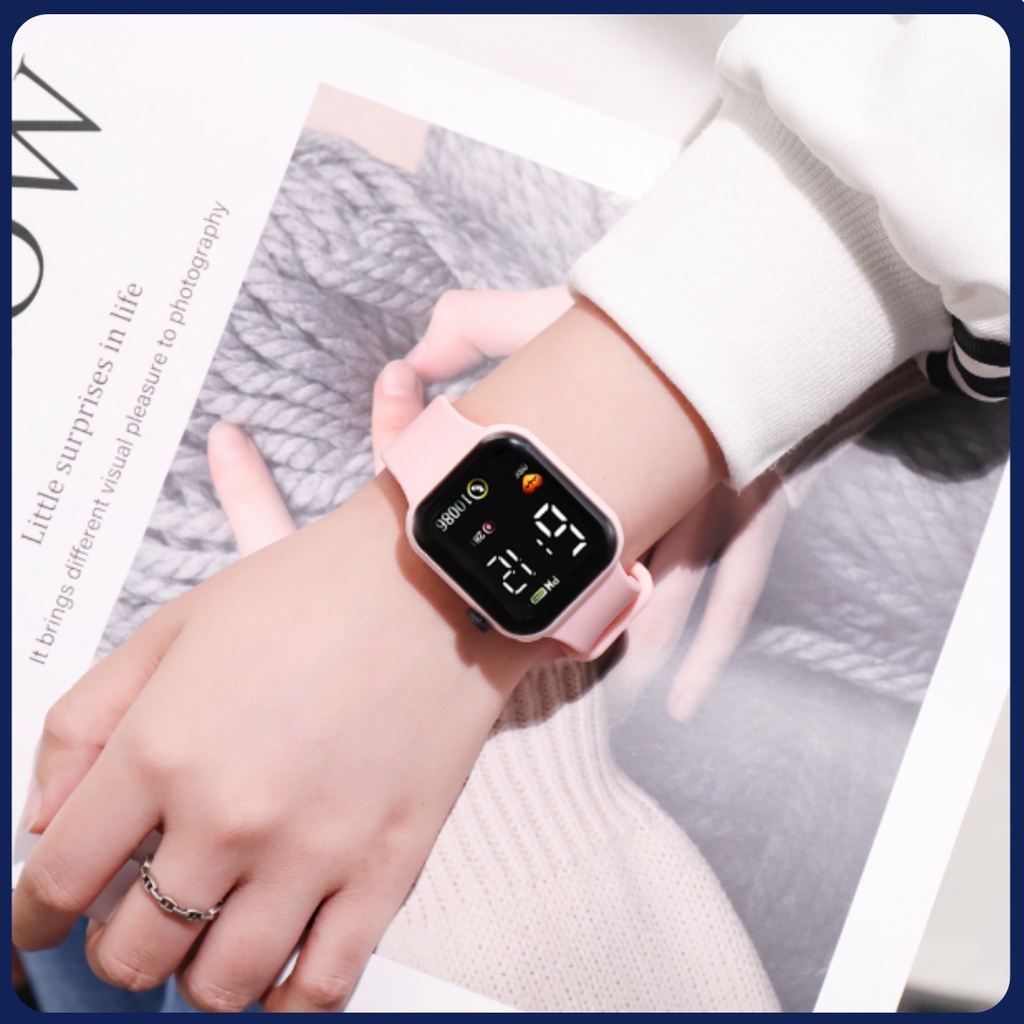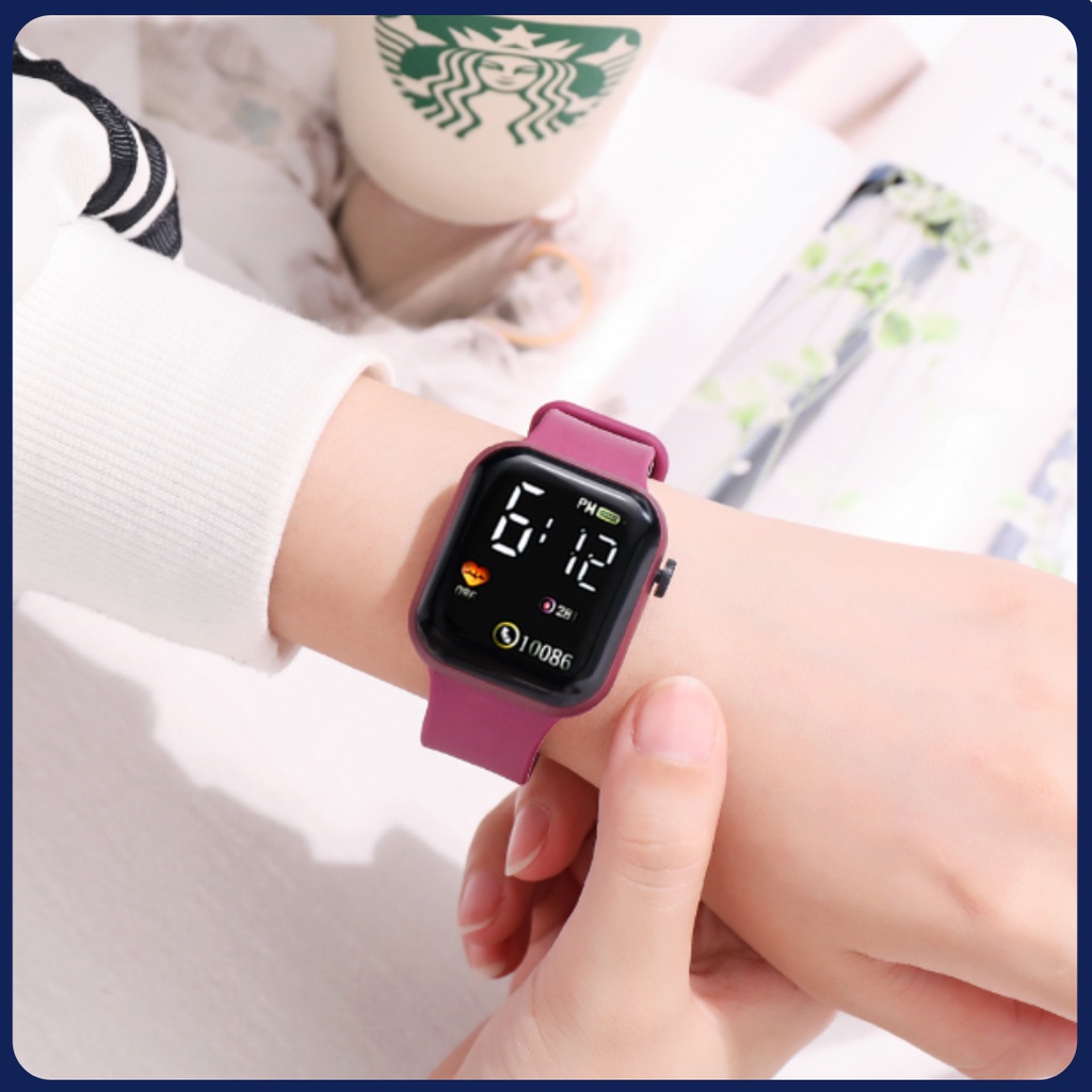 Detail Square digital LED Murah Rubber Jam tangan untuk anak-anak remaja pria dan wanita