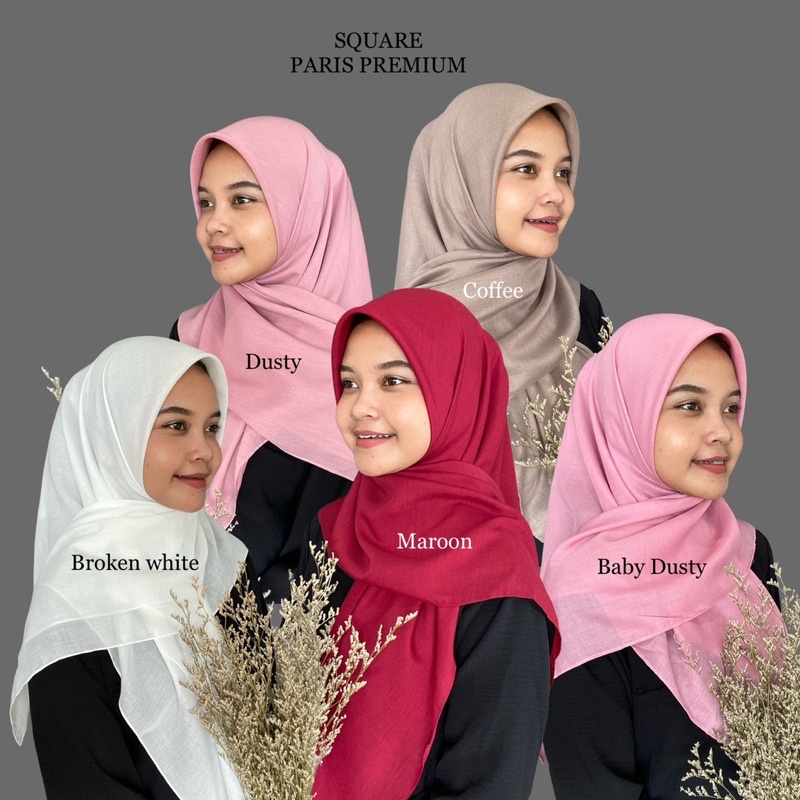 Detail SQUARE PARIS PREMIUM Jadul Sekolah segiempat hijab voal paris premium segi empat umama basic