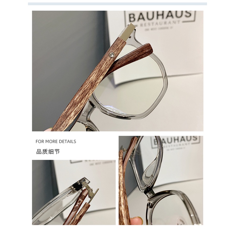 Detail Square wood grain temple Kacamata anti Radiasi Wanita Pria