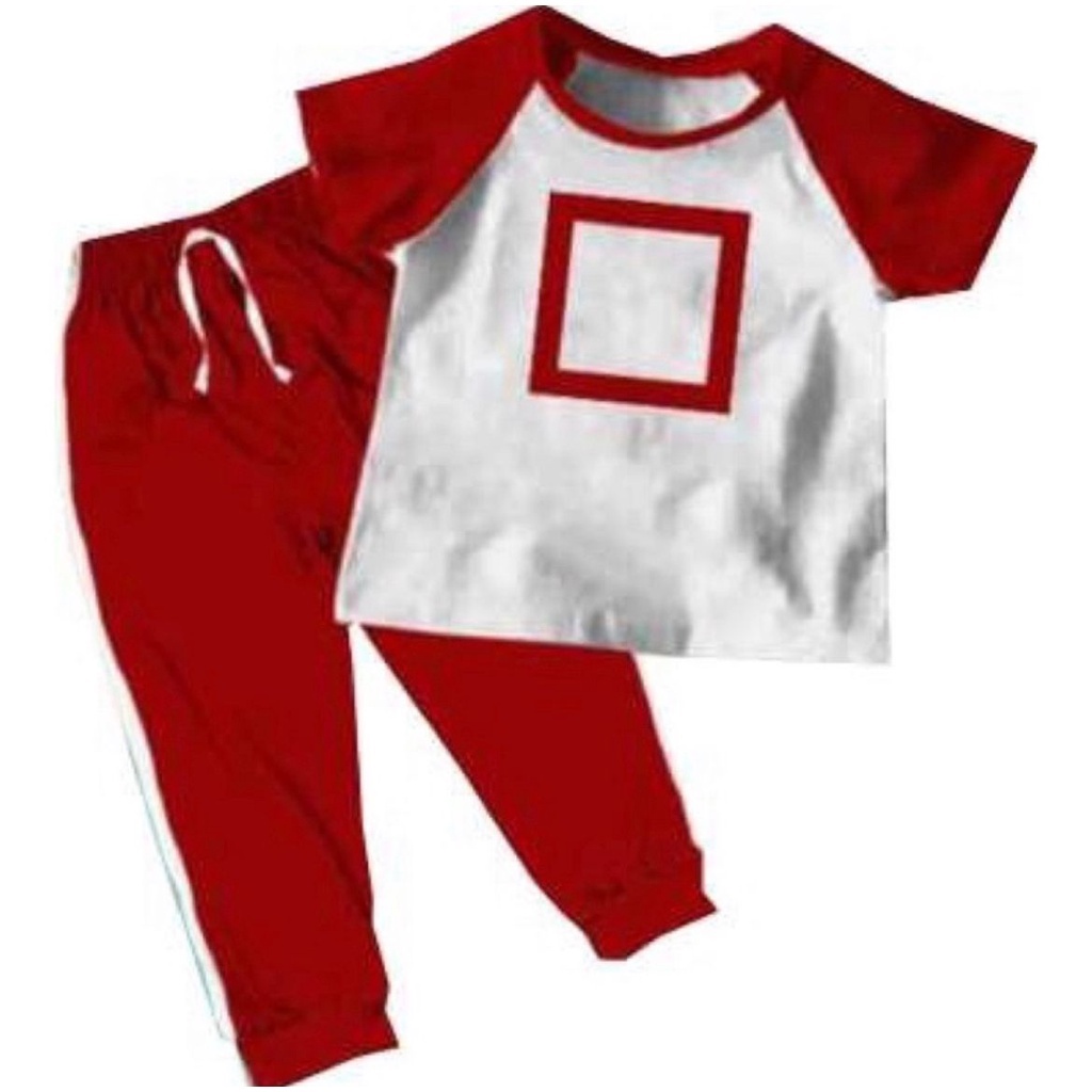 SQUID GAME SET BOY/GIRL -SATU SET KAOS+CELANA 1- 6 tahun MOTIF KOTAK SEGETIGA DAN BULAT(PENJAGA SQUIDGAME)
