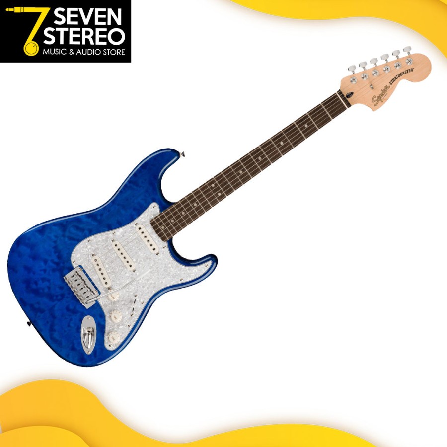 Squier FSR Affinity Series Stratocaster QMT Electric Guitar, Laurel FB, Sapphire Blue Transparent