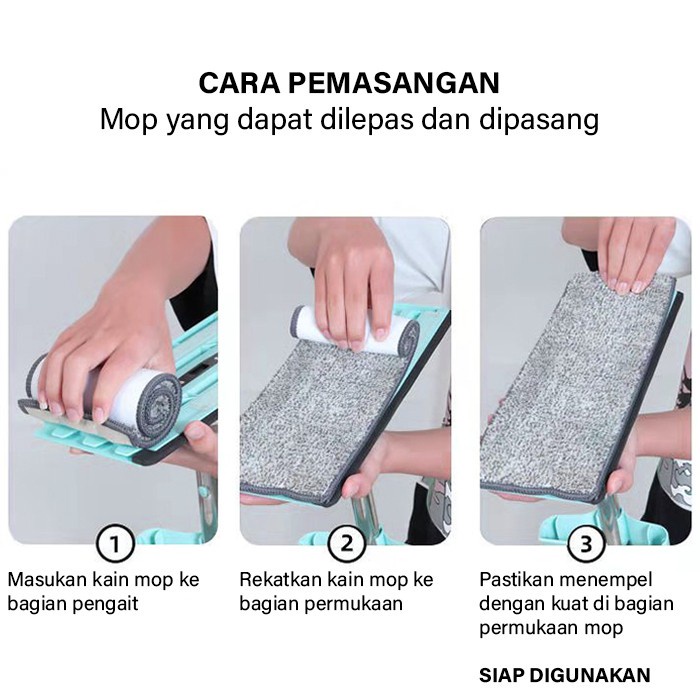 Kegunaan : 1. Dapat membersihkan secara menyeluruh termasuk area yang sulit dijangkau. 2. Kain pel berbahan serat mikro yang dapat menyerap sempurna. 3. Bisa digunakan untuk membersihkan noda kering dan basah
