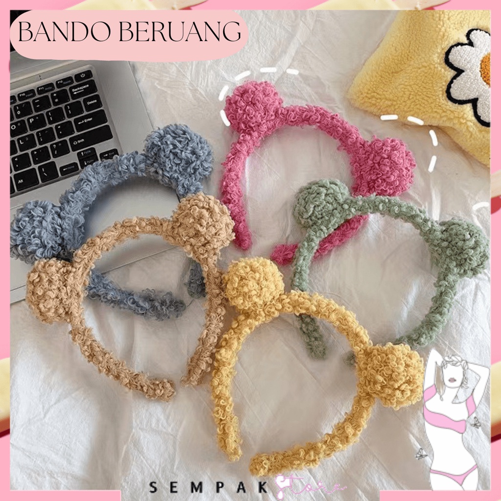 SS Bando Karakter Telinga Beruang Bear Bulu Korea Kekinian Bandana Bando Handuk Aksesoris Rambut Murah