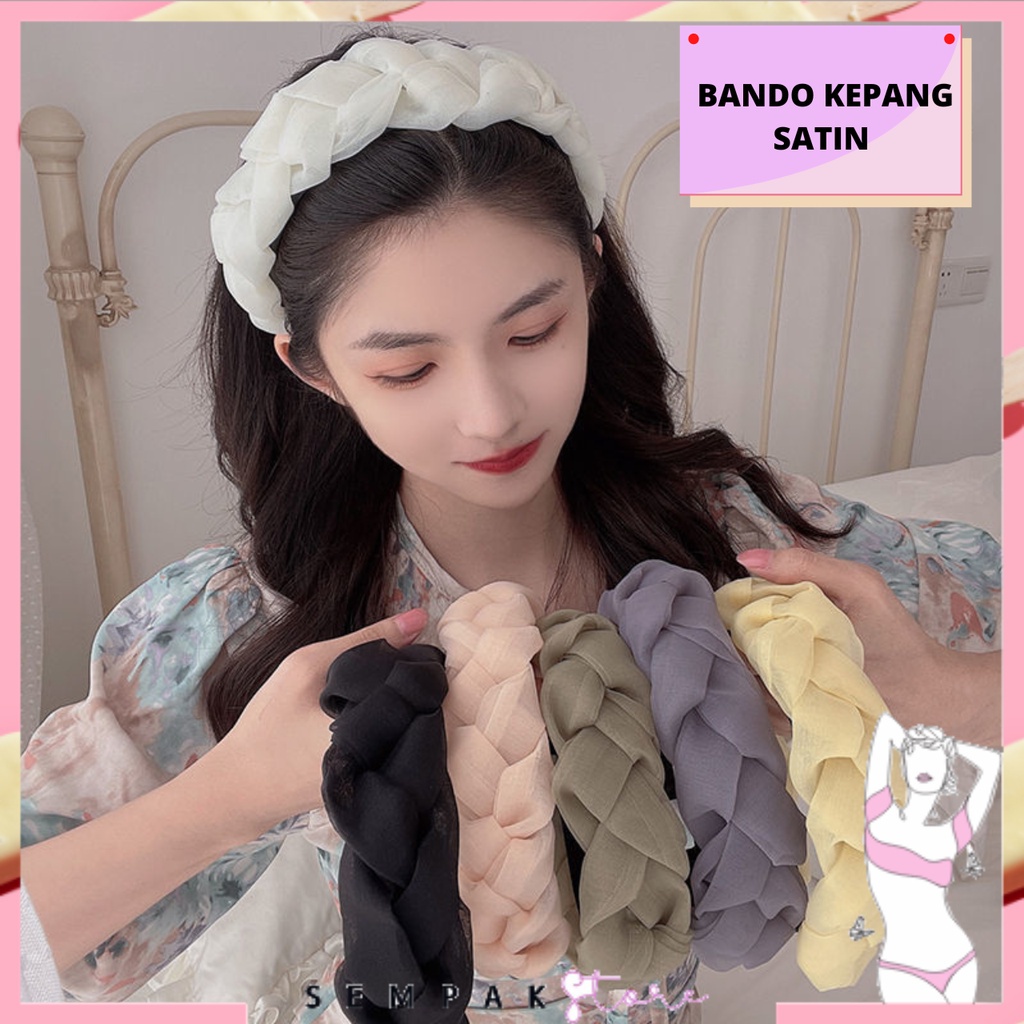 SS Bando Kepang Satin Korea Scrunchie Headband Bandana Polos Wanita Bksesoris Rambut Wanita Fashion Murah Import