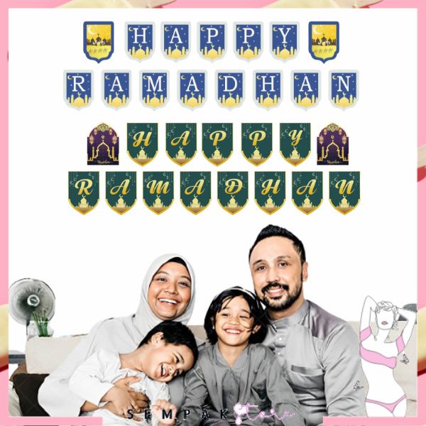 Souvenir & Party Supplies > Perlengkapan Pesta > Backdrop & Spanduk > SS Banner Flag Happy Ramadhan Bunting Warna Warni Backdrop Lebaran Dekorasi Hari Raya Murah