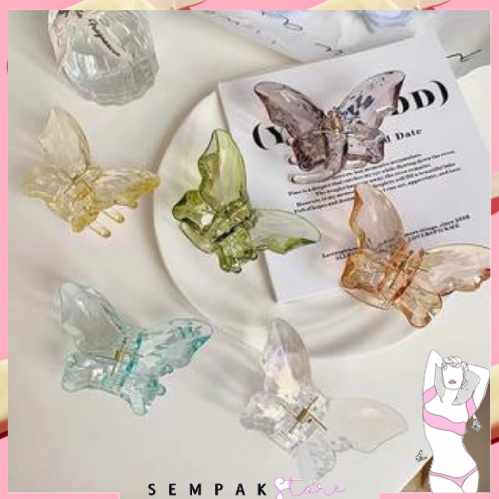 Detail SS Jedai Rambut Motif Kupu-Kupu Kristal Butterfly Korean Jepit Hair Claw Transparant Hair Clip Women Fashion Hairpin Aksesoris Rambut Murah