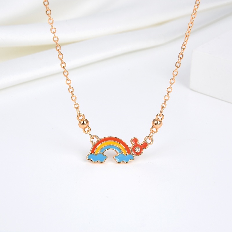 Detail SS Kalung Titanium Anak Karakter Rainbow Model Korea Kalung Titanium Wanita Emas Silver Anti Karat Kalung Anak Perempuan Titanium Mouse Anti Luntur Aksesoris Anak