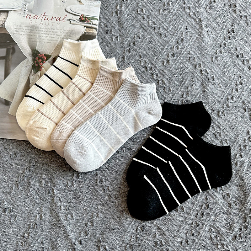 Sepatu Wanita > Kaus Kaki & Stocking > Kaus Kaki > SS Kaos Kaki Pria dan Wanita 6797 Kaos Kaki Ankle Motif Garis Kecil Kaos kaki Unisex Semata Kaki bahan Cotton Penyerap Keringat