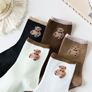 SS Kaos Kaki Wanita Korea Motif Beruang Kaos Kaki Panjang Bear Socks Karakter Ankle Socks Korean Model Simple Cute
