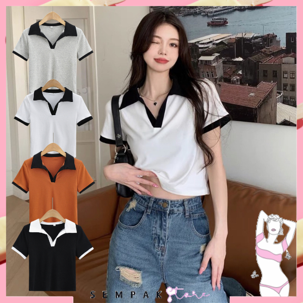 Bahan : Katun Polyster Kerah : V-neck Model : Crop Top