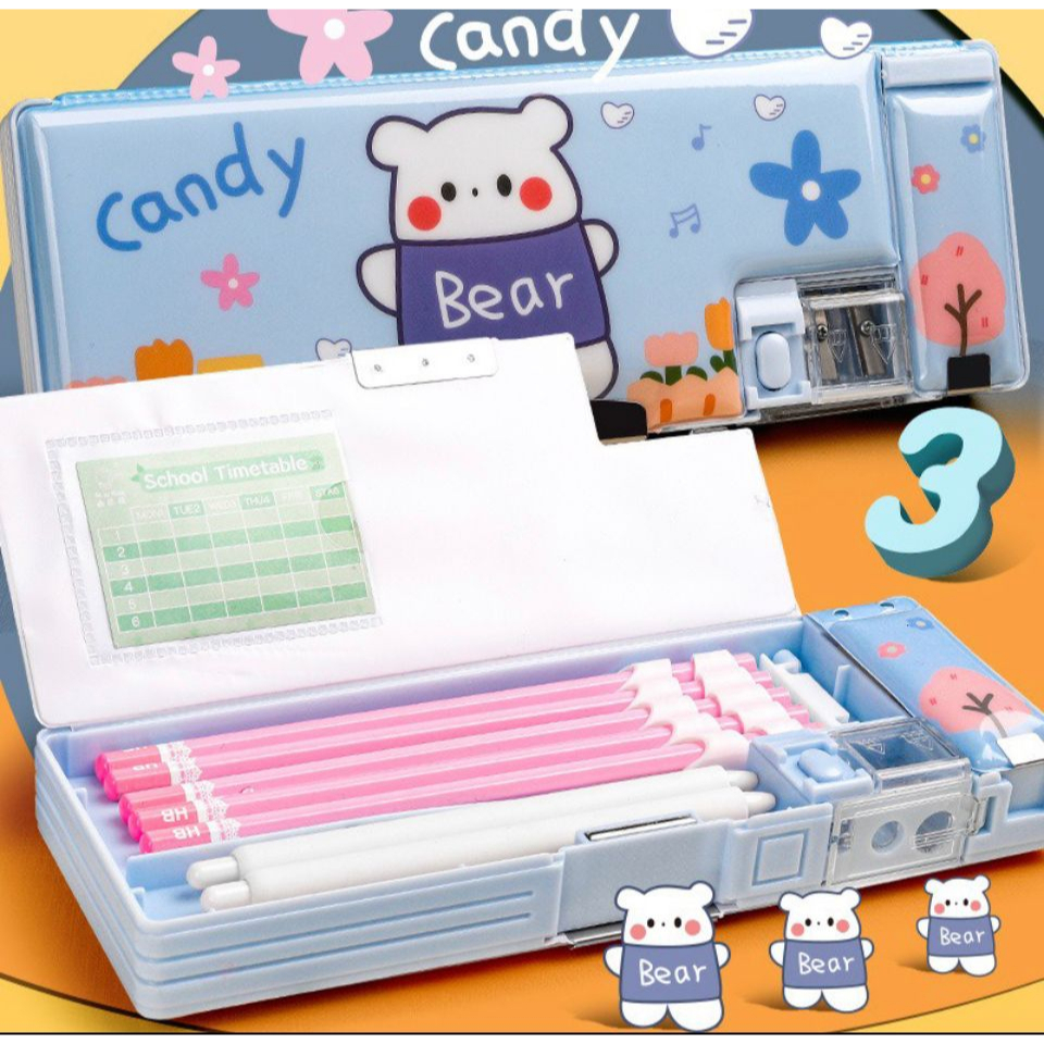 SS Kotak Pensil Pola Kartun Lapisan Ganda dan Tunggal dengan Rautan Kapasitas / Tempat Pensil Multifungsi Motif Unicorn / Dinosaurus / Astronot Untuk Anak Tk
