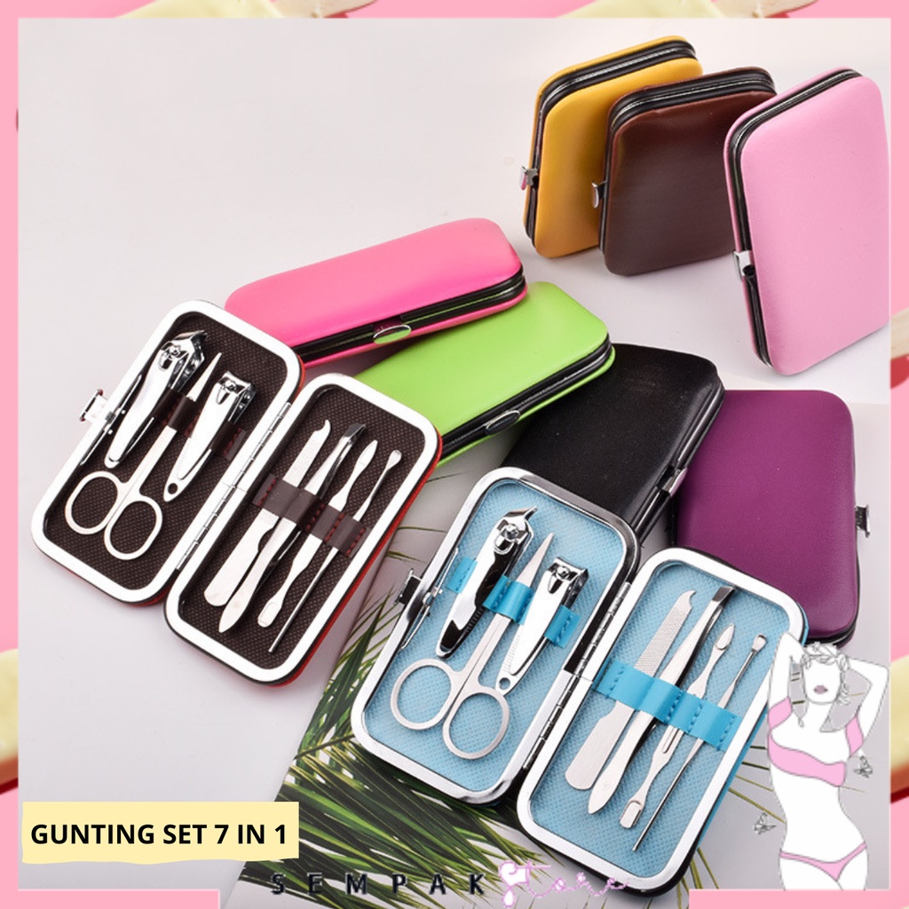 SS Manicure Set 7 in 1 Gunting Kuku Nail Art Set Dompet Menicure Pedicure Set Gunting Kuku Stainless