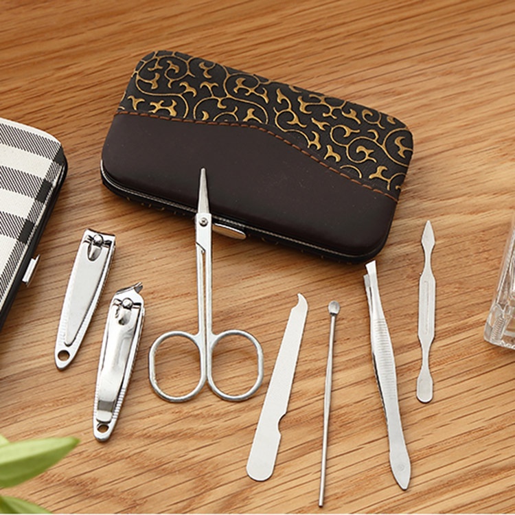 Perawatan & Kecantikan > Perawatan Kuku > Alat & Mesin Manicure > SS Manicure Set 7 in 1 Gunting Kuku Nail Art Set Dompet Menicure Pedicure Set Gunting Kuku Stainless